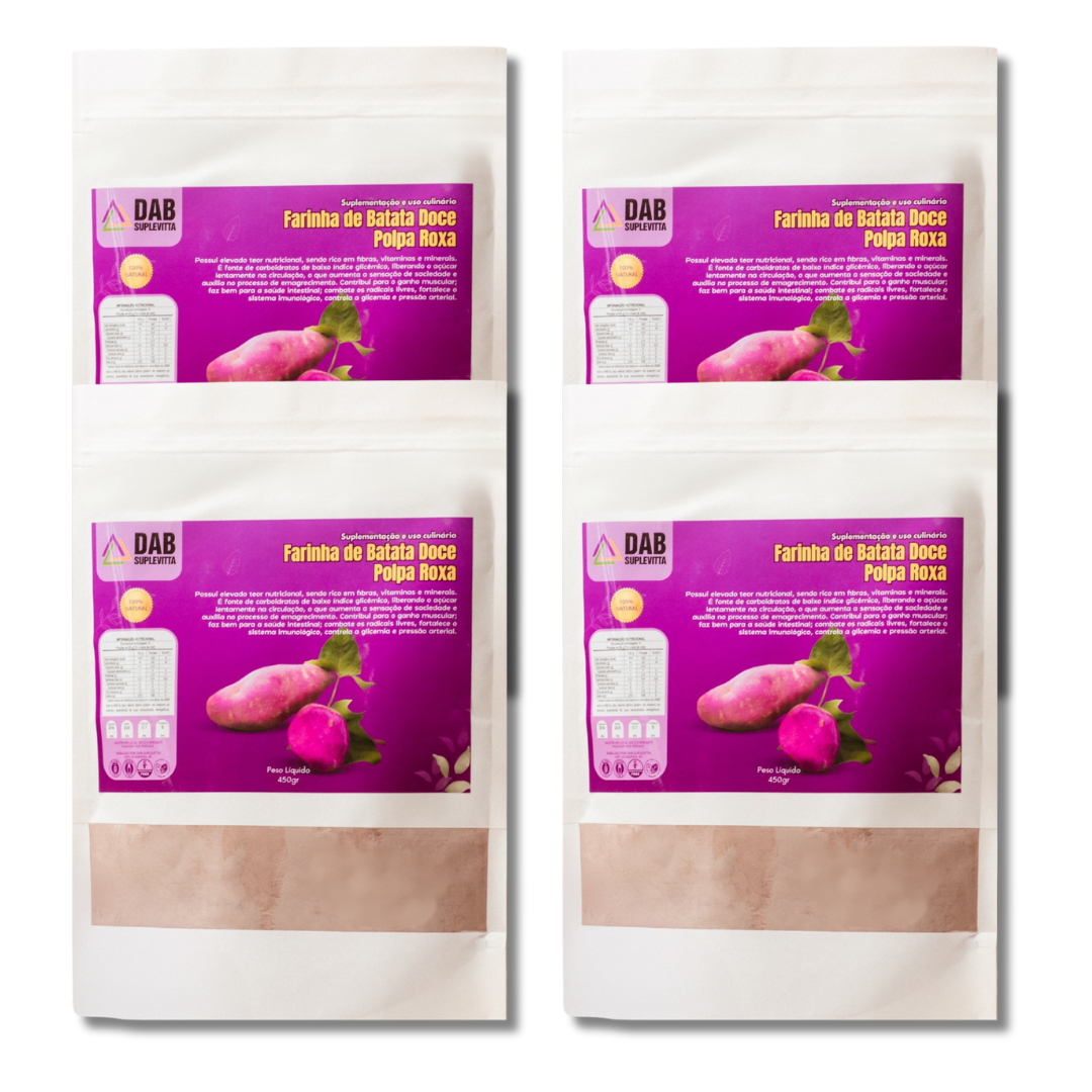 Quantidade: O KIT contém 4 Unidades do Suplemento Farinha Batata Doce Polpa Roxa Pó (450g cada)