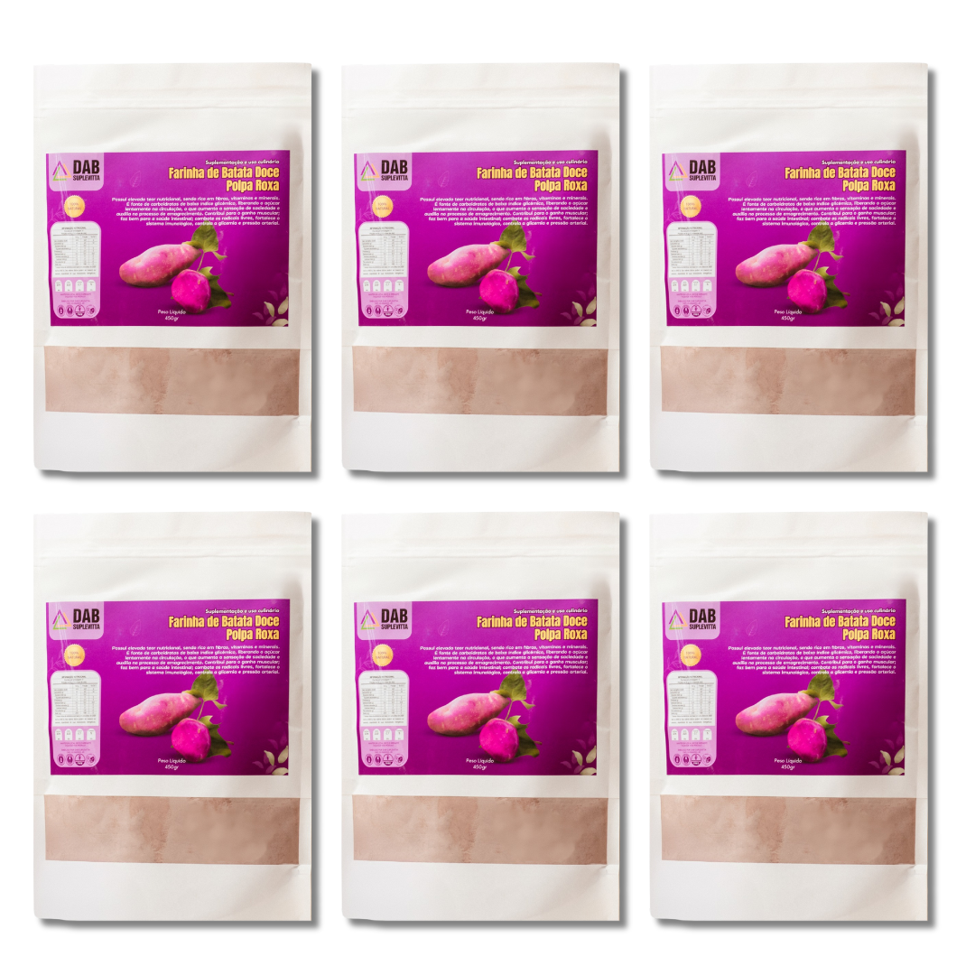 Quantidade: O KIT contém 6 Unidades do Suplemento Farinha Batata Doce Polpa Roxa Pó (450g cada)